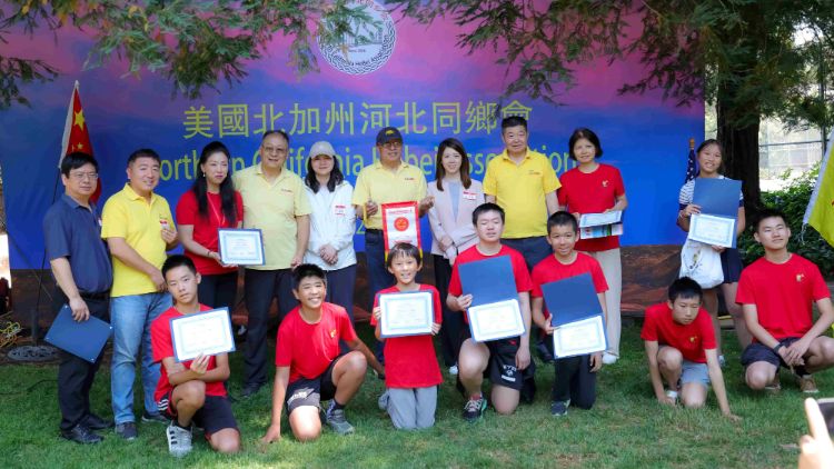 图:嘉宾与获奖学生合影。美国北加州河北同乡会提供