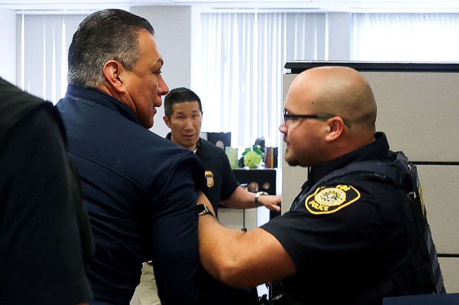帕迪拉在现场突然插话,表示自己有问题要向部长提出。在被现场安保人员驱离时,他大声喊道:“我是参议员亚历克斯·帕迪拉,我有问题要问部长!”视频显示,他随后被制服在地,戴上手铐,不过并未遭到拘留或正式逮捕。