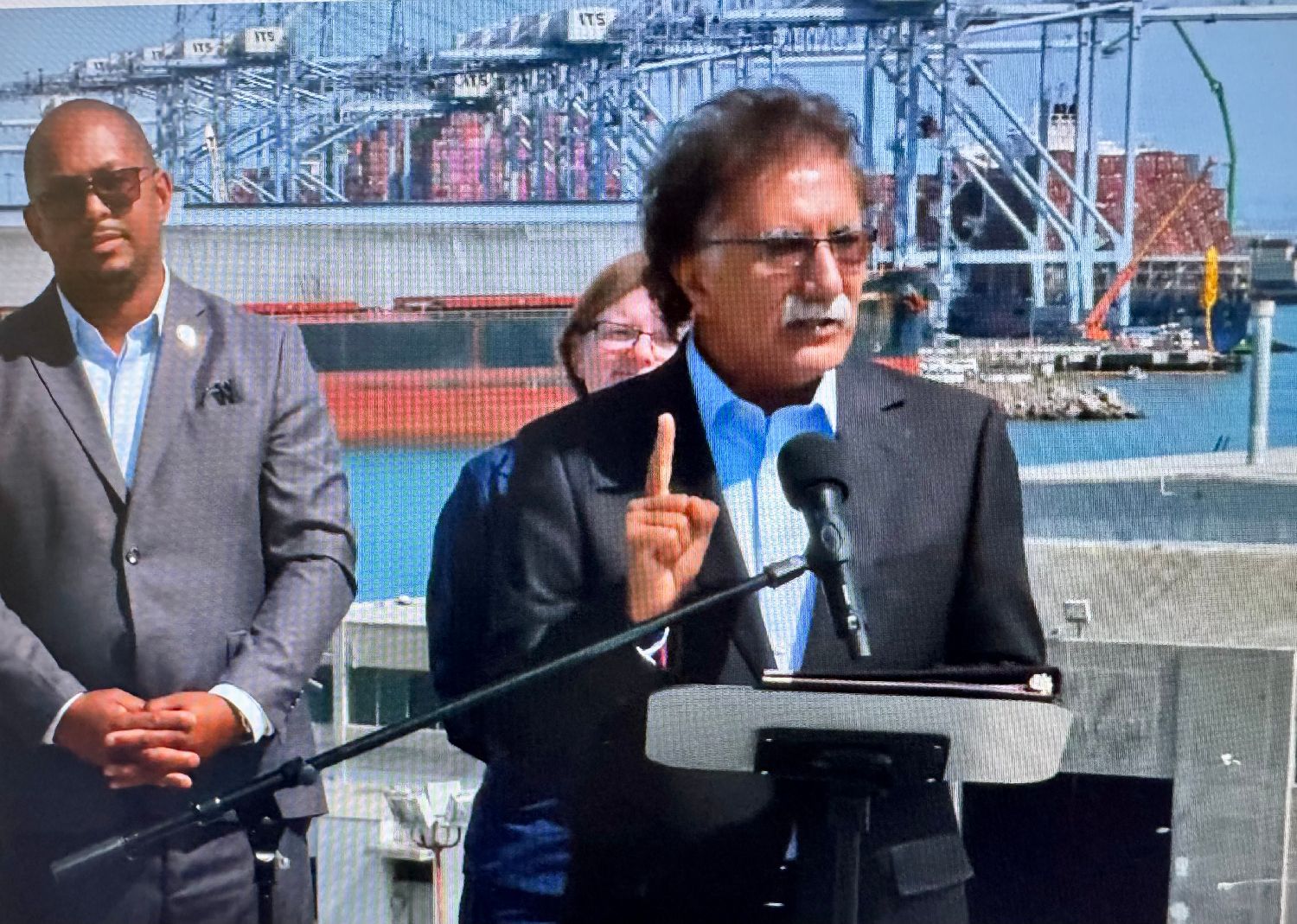 港口首席执行官科德罗表示,此次集装箱坠落的规模是“前所未有”的。官员们说,集装箱偶尔会在港口掉落或倾倒,但几乎从未发生过如此大规模的事故。港方官员表示,事故发生在长堤G码头,港方还提供了一些当时的现场图片。