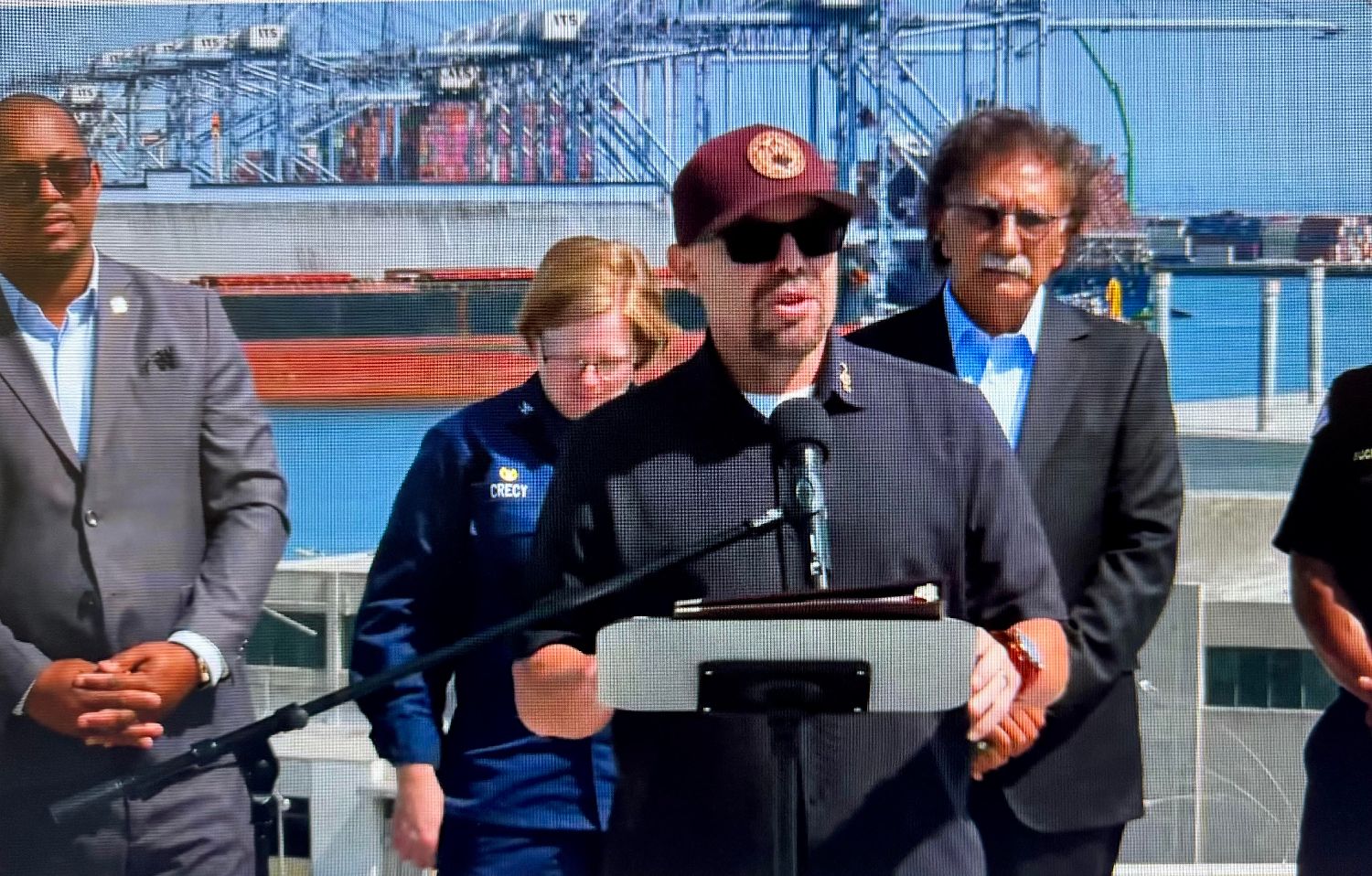 官员们在下午的新闻发布会上表示,这些集装箱于9日上午9点前,在“密西西比号”集装箱船停泊在G码头时坠落,并损坏了一艘与其相连、用于收集排放物的小型清洁空气驳船。