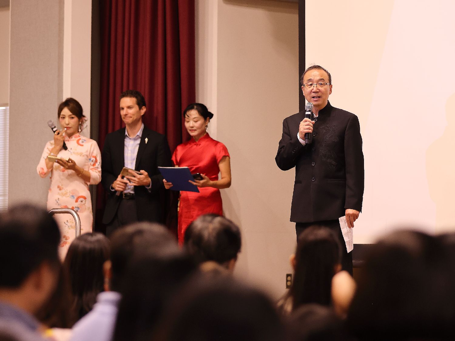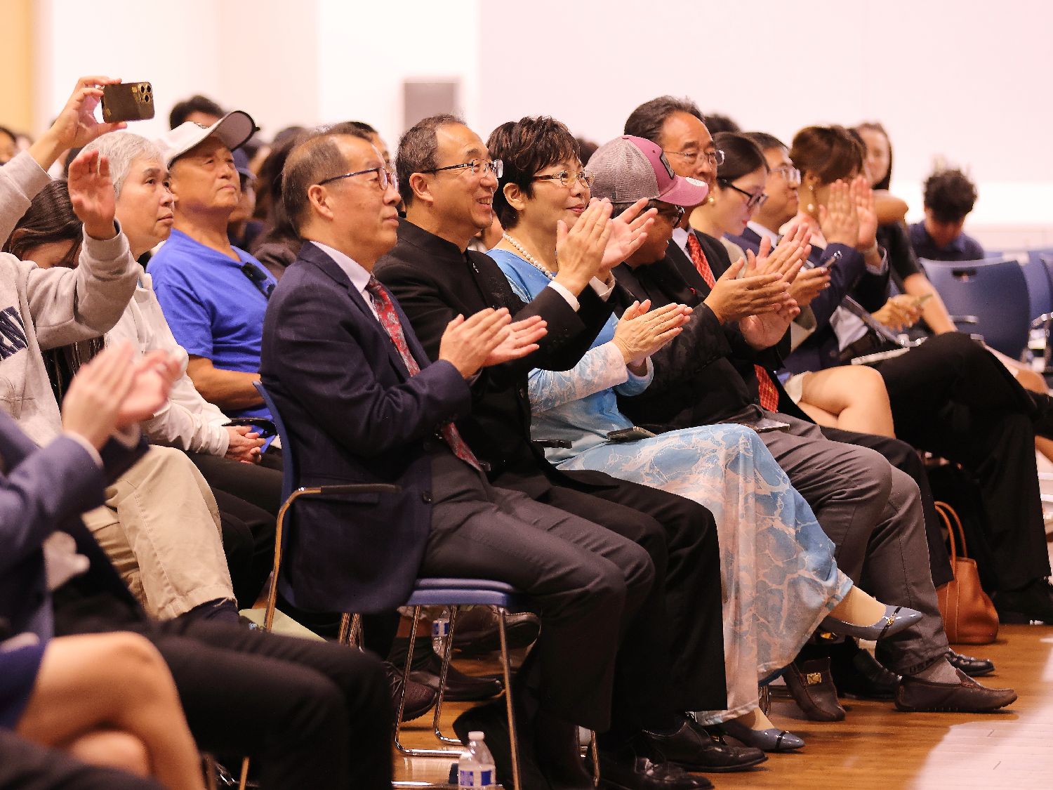 侨界代表南加州中华高校校友会联盟会长刘国云、南加州中华高校校友会联盟教育基金会理事长张鸣、Zhang Trust张祥华(Charlie Zhang)、美国华人社团联合会执行长兼秘书长林连连教授、美华总代表黄冬平女士、倍爱教育银川老师、美宝集团洪扬、美国《天下华人》集团总裁高云青、美国北京联合会会长李湘如、新力教育Wendy Weng、美国北京联谊会青年委员会副会长林海涛等均登台向获奖同学致贺。