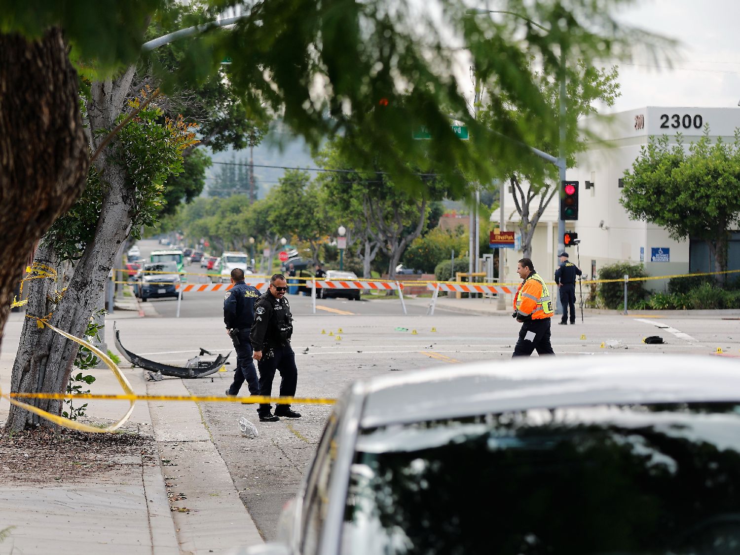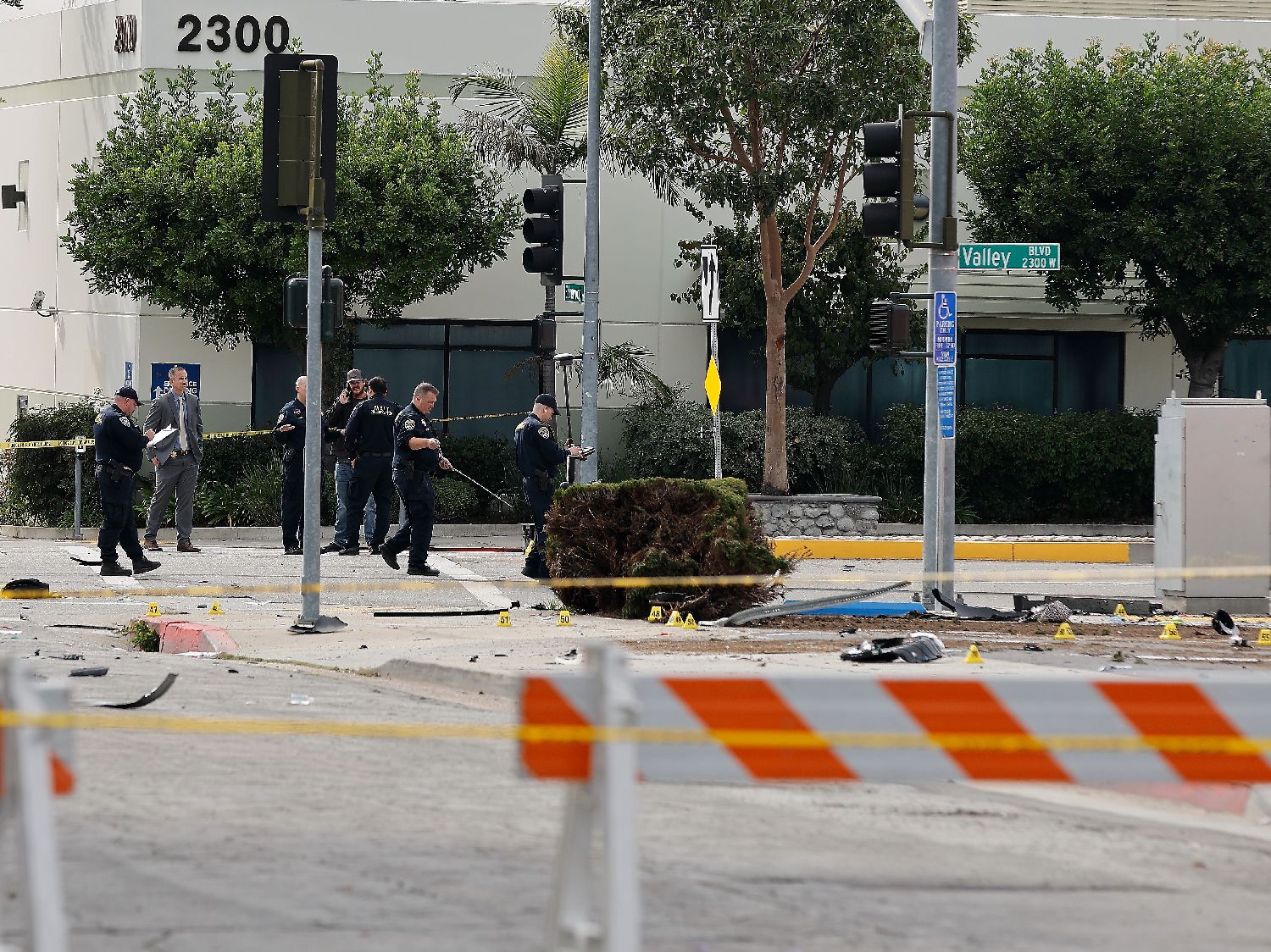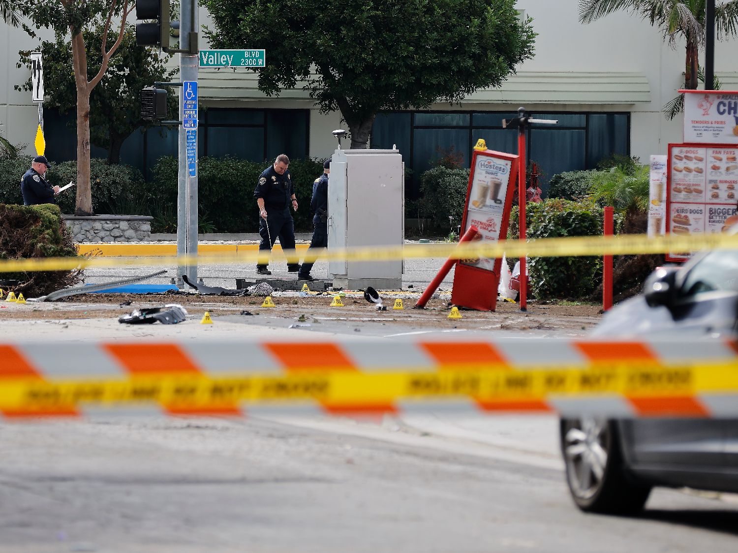 在追捕过程中,一辆阿罕布拉警察局的SUV与一辆银色现代(Hyundai)SUV相撞,导致警车严重受损,安全气囊弹出。现场视频显示,涉事警官被送往洛杉矶县综合医疗中心(Los Angeles General Medical Center)时似乎已失去知觉,当时情况危急,随后在医院不治身亡。