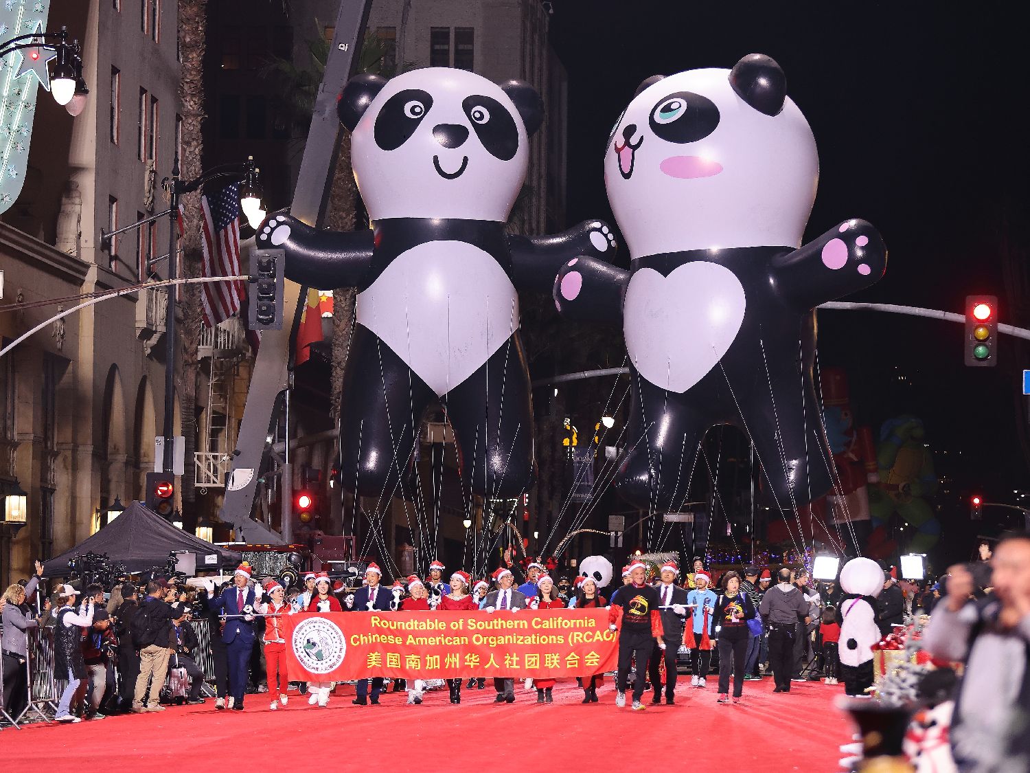 【侨报讯】11月30日晚第93届好莱坞圣诞大游行在好莱坞星光大道隆重举行。美国华人社团联合会(以下简称“美华联”)近200人的中国文化方阵,为全球观众呈现了一场融合中华传统与现代艺术魅力的精彩展示。中华人民共和国驻洛杉矶总领事郭少春夫妇现场观赏支持。