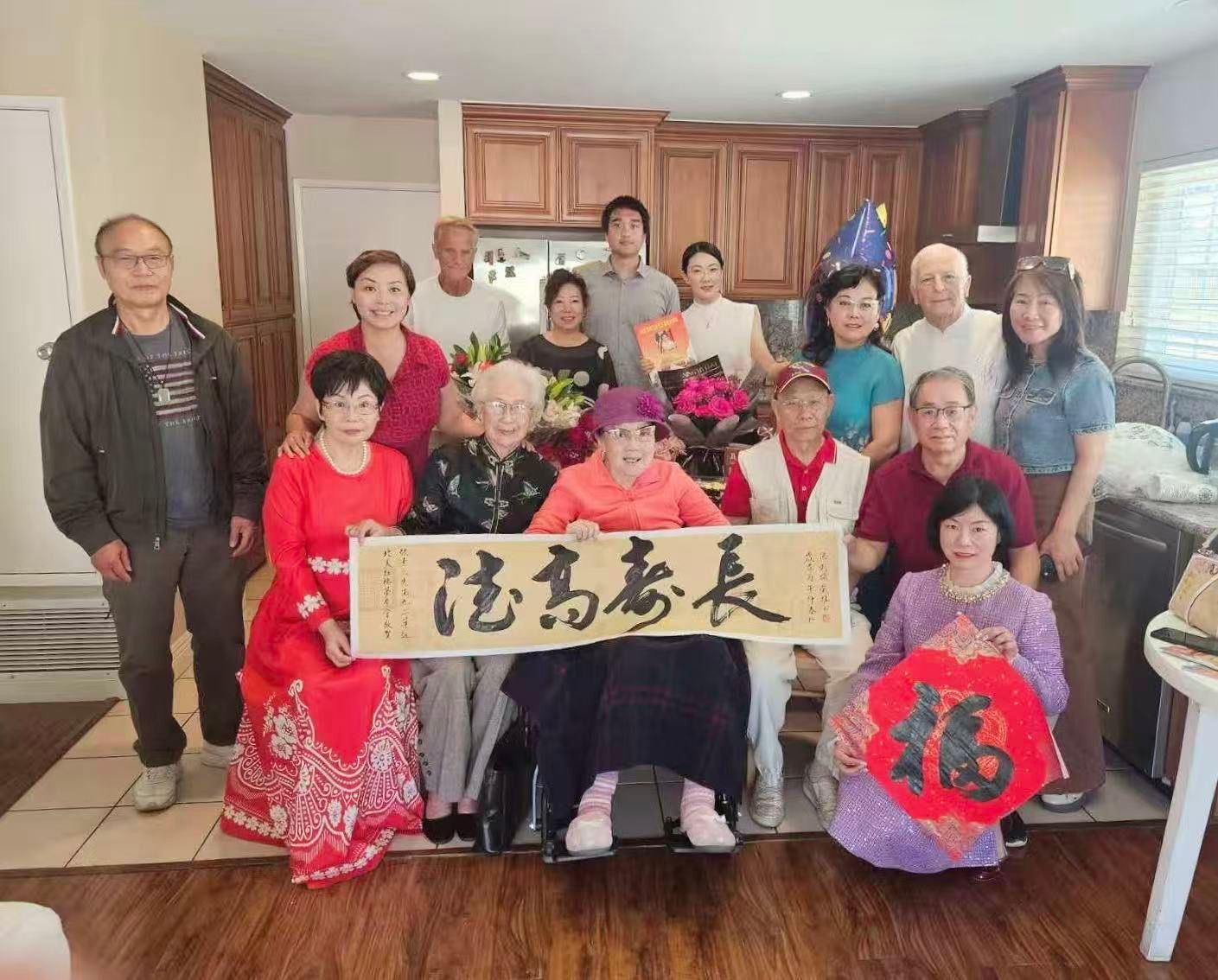 北美红学会会长戴维、荣誉会长王玲和副会长郑珍华一同参加了活动,戴维会长赠送了他的书法作品:德高寿长。87岁高龄的王玲老师依偎在大姐身边讲着悄悄话,像姊妹一样。他们表示,张素久大姐被北美红学会推举为荣誉会长,她多年来始终关心和支持北美红学会的发展,多次亲临现场参加活动。张大姐自己一直非常喜欢《红楼梦》,也由衷赞赏在海外坚持传播与研究红学的积极意义,认为这是文化的延续,是精神的传承。言语之间,既有对传统文化的深情,也有对后辈的殷切期望。张大姐还捐赠过数百美元给红学会,这份心意令红学会众人深受触动。在他们心中,张素久大姐不仅是红学会的一位支持者,更是一位精神上的引路人。