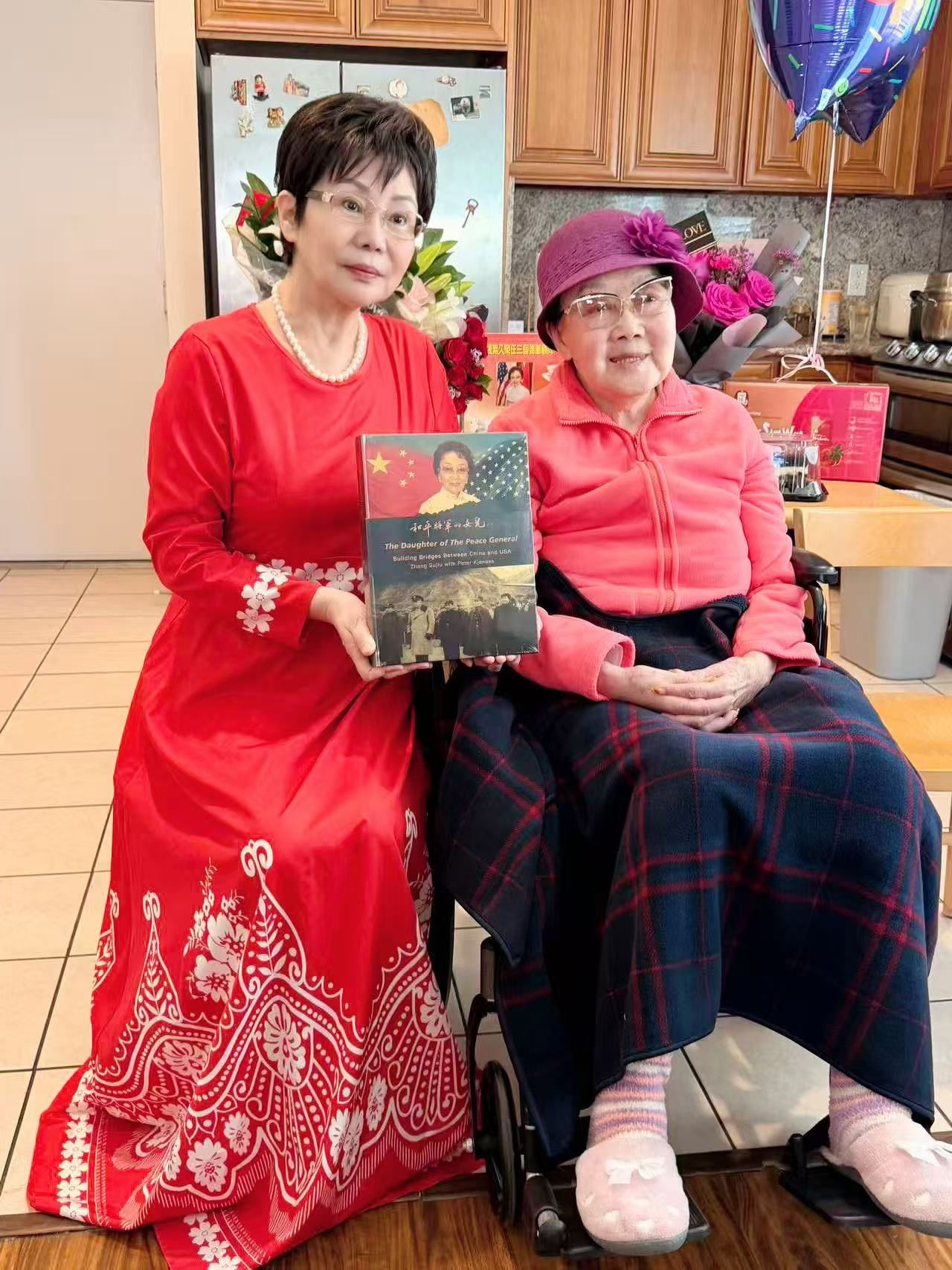 走进张素久大姐的居所,大家看到的是她恬静而明朗的笑容,安然与笃定的从容,温暖宁静的优雅风度。她的亲切与真诚,悄然拉近了彼此的距离,使整个空间都充盈着温馨与感动。张素久大姐去年8月在美国出版了她的英文自传《和平将军的女儿》,并在洛杉矶迪斯尼音乐厅隆重举办了新书发布会。这本自传记述了她长期以来在南加州侨界参与和举办重大活动的经历和心路历程,是华人在美国拼搏进取的时代缩影。这本自传历经8年的潜心打磨,凝聚了编委会成员的心血与坚持,投入大量时间义务付出,终于帮助张大姐实现了以文字记录华人历史的心愿。编委林连连自己之前多次去看望张大姐,这次组织了部分编委会成员以及与本书有关的各方代表共同来拜访大姐。