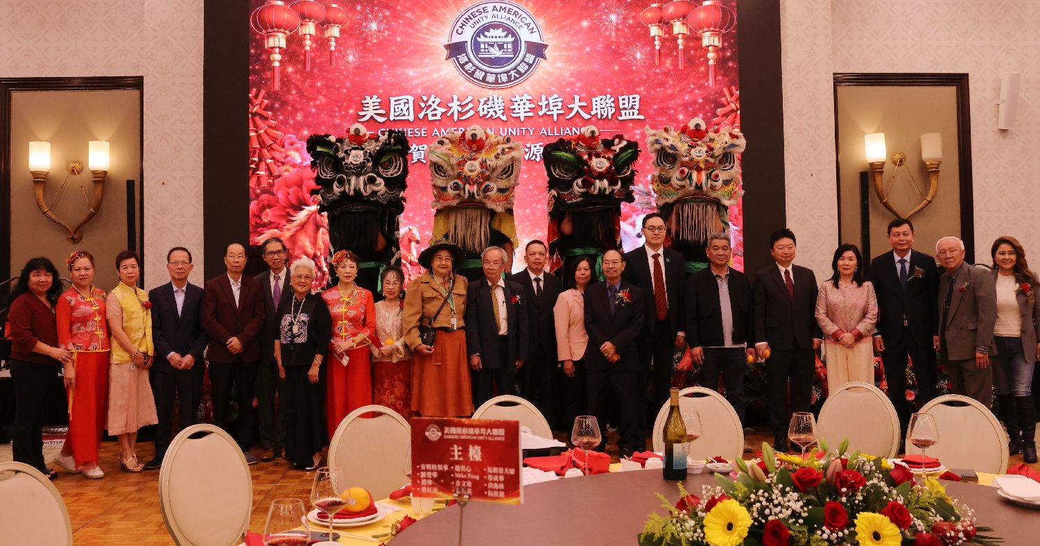 当晚晚宴以祥狮献瑞开场,4只彩狮献舞,随后向观众抛撒橘子、生菜,寓意富贵吉祥。中国驻洛杉矶侨务领事安明栓与李俊、联邦众议员赵美心、加州参议员佩瑞兹(Sasha Pérez)、加州众议员方树强、洛杉矶县高等法院法官周本立等出席了晚宴。