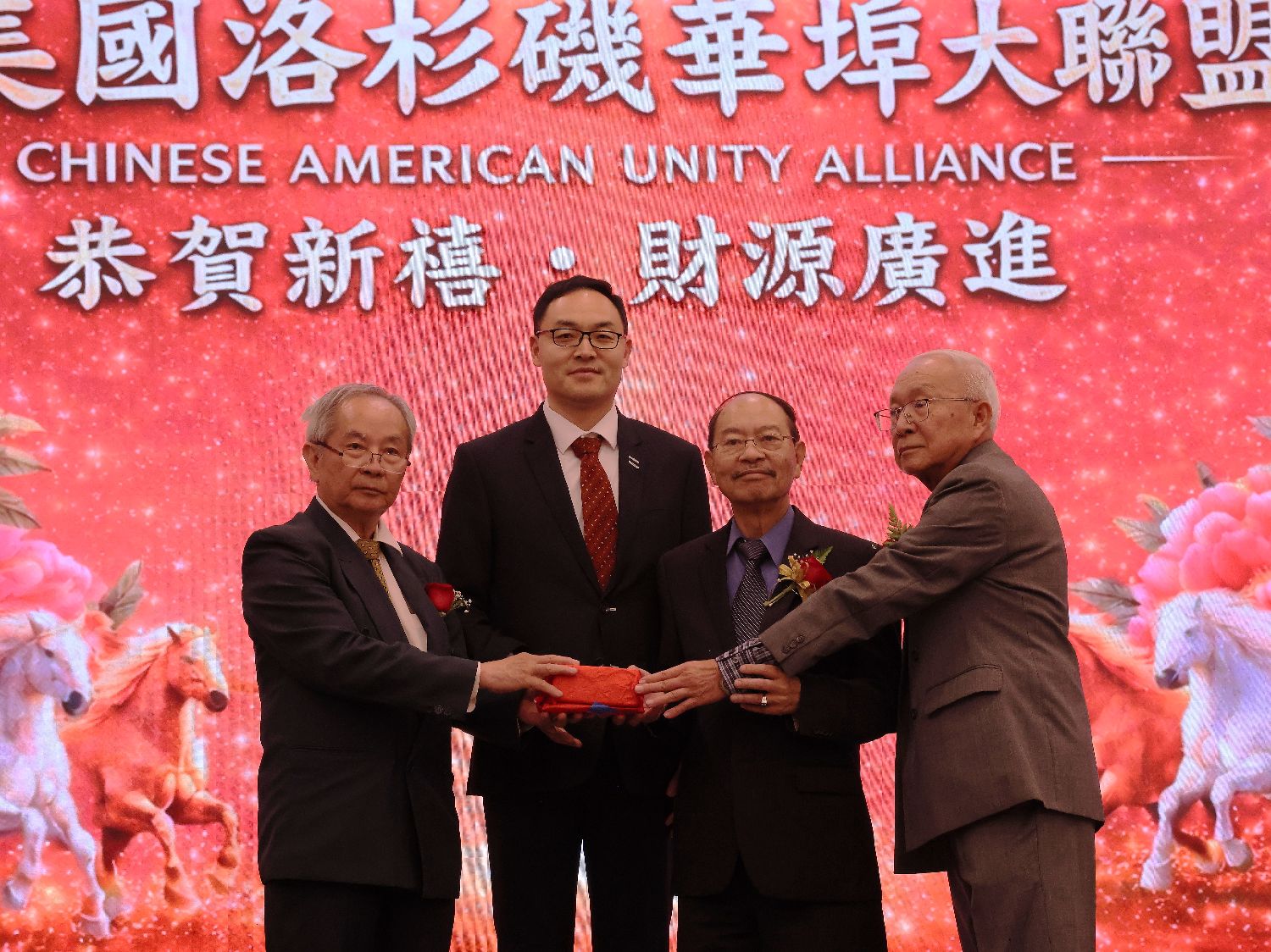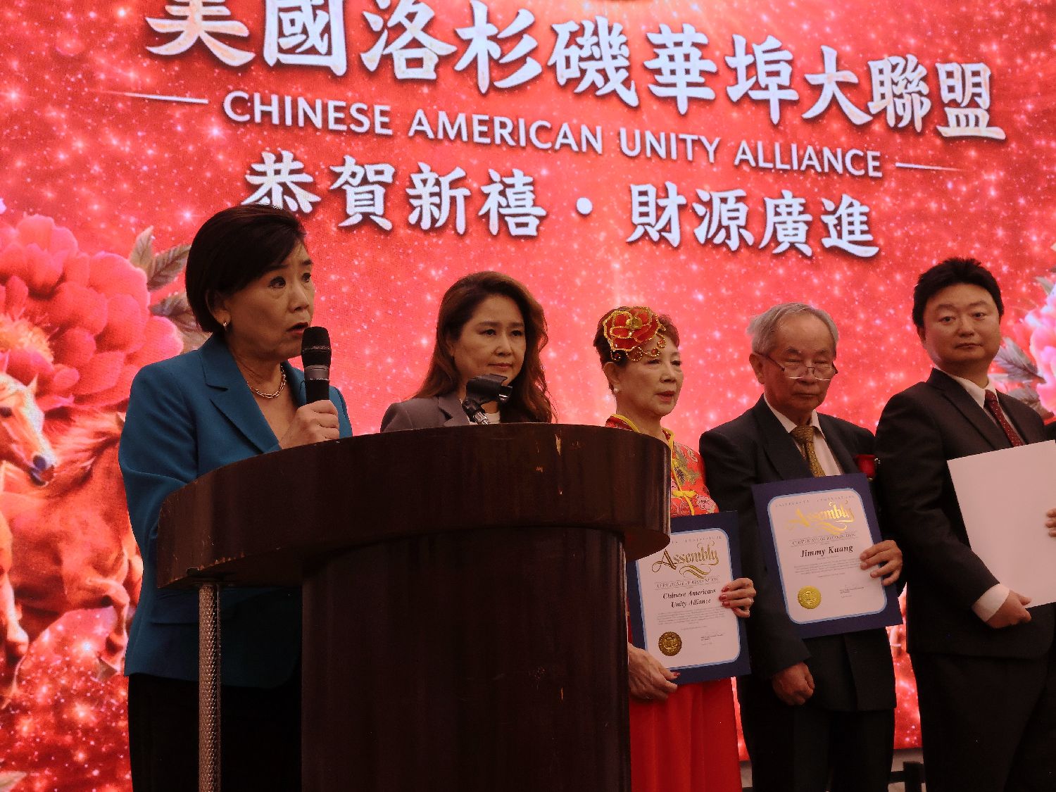 赵美心在致贺辞时特别提及了该联盟多次在社区出现重大危机时所做出的及时反映与奉献。她表示,该联盟成立3年来先经历了2023年的蒙特利公园市大规模枪击案,然后又是2025年的洛杉矶大火。在枪击案发生后,该联盟不仅向受害人家属捐款,还协助他们的家人办理了跨国旅行所需要的文件与签证,受到人们的肯定;而洛杉矶大火之后,该联盟仅用一天时间即为受灾民众募款了1万2000元,更是传为佳话。