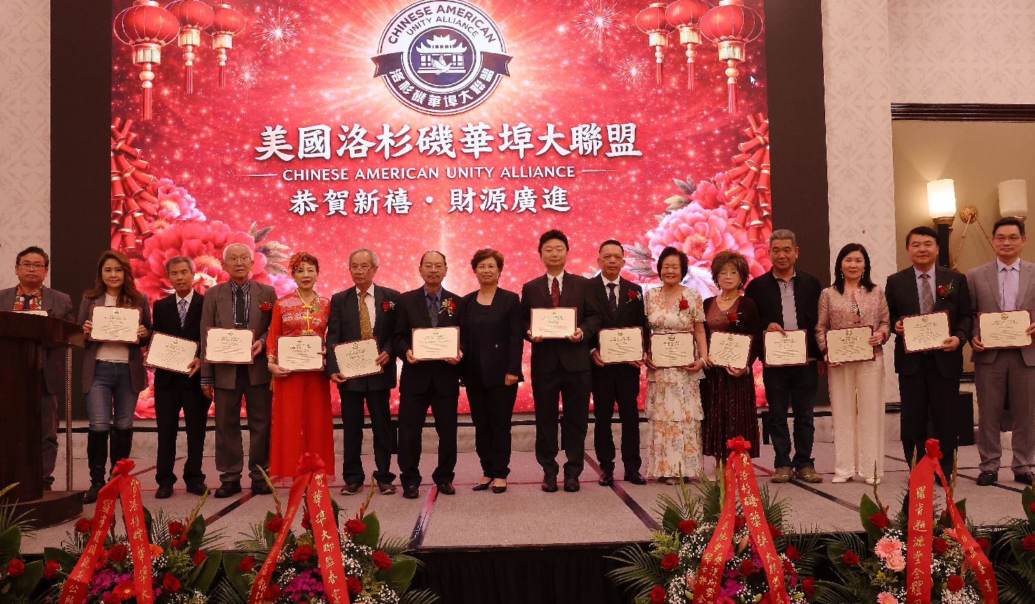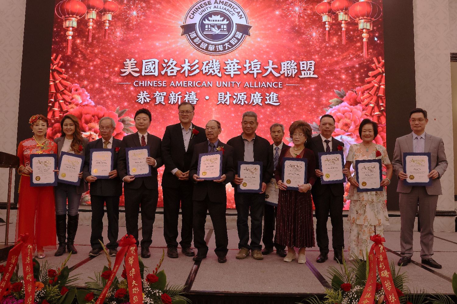 美国南加州华人社团联合会理事长赵林、监事长路霞、共同主席团主席许成武,美国南加州华人华侨联合会会长蔡成华的代表、美国福建总商会会长杨丽祯,罗省中华会馆主席聂泽英、副主席朱国华、全美华人协会南加州分会分会会长何畅源及荣誉会长关键荣、世界越柬寮华人团体联合会理事长招铭琪,美国北京联谊会理事长北奥,华美博物馆之友会董事长阮桂铭教授、南加州华人排球俱乐部名誉主席余文波,南加州中华高校校友会联盟前理事长伦炳强,泛美中华联谊会执行长张自豪,百嘉利老板樊碧云女士和香港凡艺文化传媒创始人唐瑭等出席了晚宴。