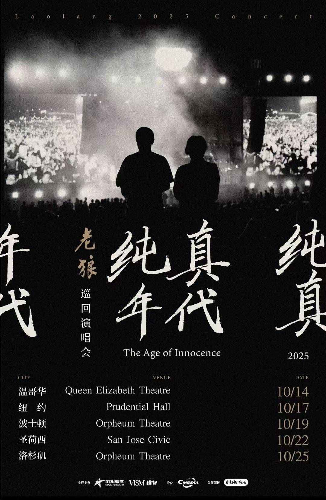 在这个节奏⻜快、喧嚣嘈杂的时代,老狼的音乐却始终如一地传递着温暖、真挚与共鸣。2025年,他发起了“纯真年代”主题巡演,致敬⻘春与回忆,也让歌声重新唤醒那些被时光轻轻掩埋的动人瞬间。巡演自开启以来便引发了全球歌迷广泛共鸣,场场爆满,观众一同高唱,那些熟悉的旋律唤起了跨越时空的共情。