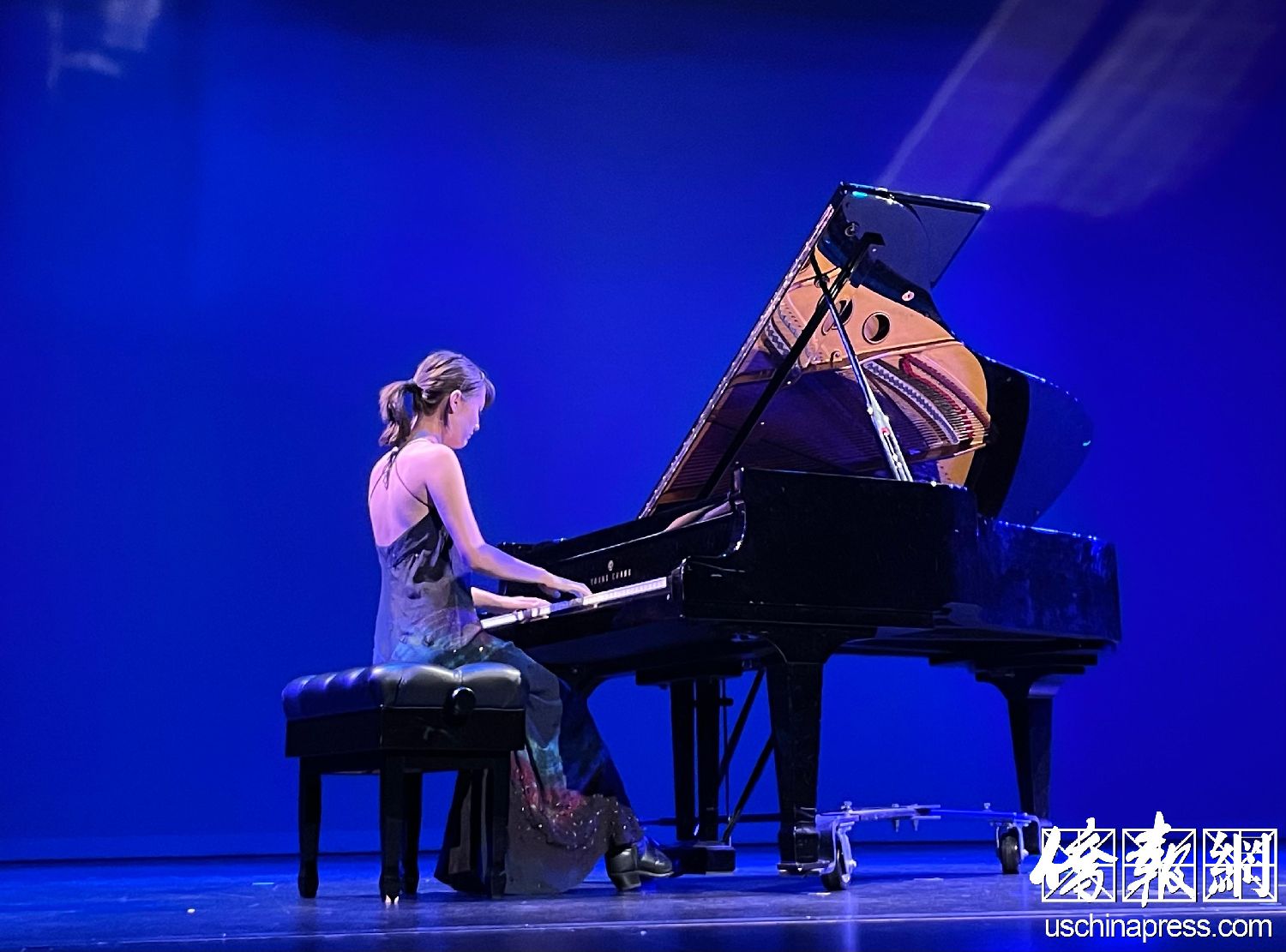 西雅图西北高中十年级学生伊萨·尼古拉斯表演了钢琴独奏:贝多芬《暴风雨奏鸣曲》D小调第十七号钢琴奏鸣曲,娴熟的技艺,优美的旋律,让观众如痴如醉。