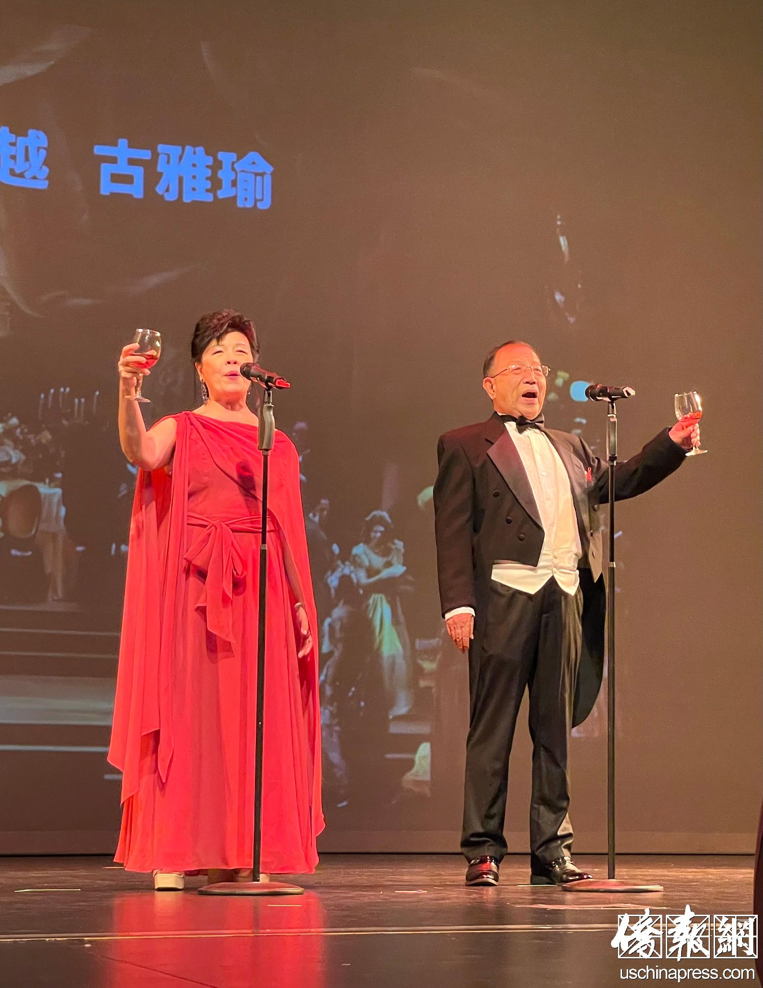 西雅图著名女高音歌唱演员古雅瑜和男高音歌唱演员李越一起演唱了名剧《茶花女》中的选段《饮酒歌》,高亢激昂的旋律和欢乐的歌声在演艺大厅里久久回响,让人深受感染。