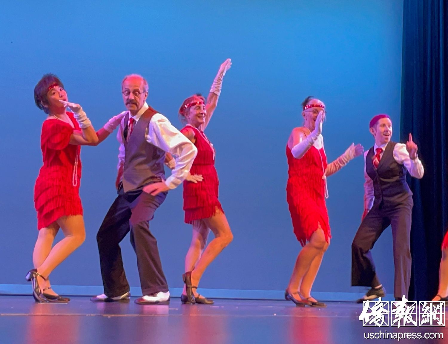 由美国萨沃伊摇摆舞俱乐部表演的舞蹈《我的女孩》和《绿鸡蛋和火腿》,欢快奔放,诙谐幽默,动作夸张,极富感染力,观众不断传来掌声和欢呼声。编导盖伊·卡里迪告诉侨报记者:“今天很荣幸来参加这个演出活动。我们萨沃伊摇摆舞俱乐部表演团是当今世界上历史最悠久的摇摆舞团之一,成立于1993年,如今已超过480场演出,每年都为美国西海岸的观众带来精彩的表演。”