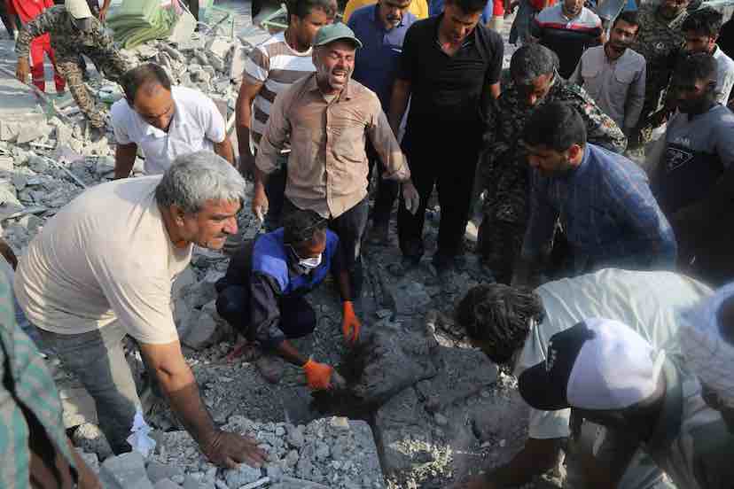 伊朗遭遇空袭后,人们在废墟中寻找幸存者。(图片来源:WANA/路透社)