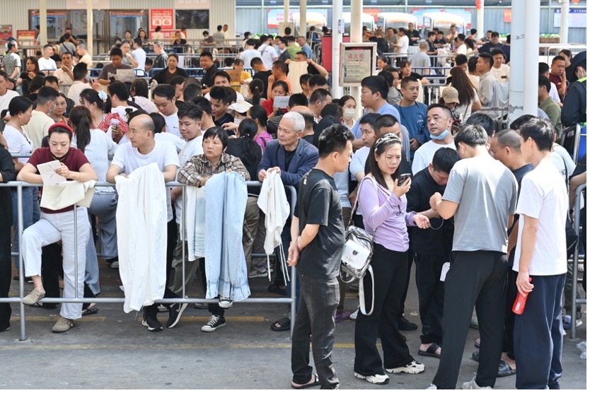 3月16日,制衣厂招工人员手持成衣样品在康鹭新招工广场招聘制衣工人。近日,广州市海珠区的“制衣村”康乐村、鹭江村等地的制衣厂进入招工旺季。中新社