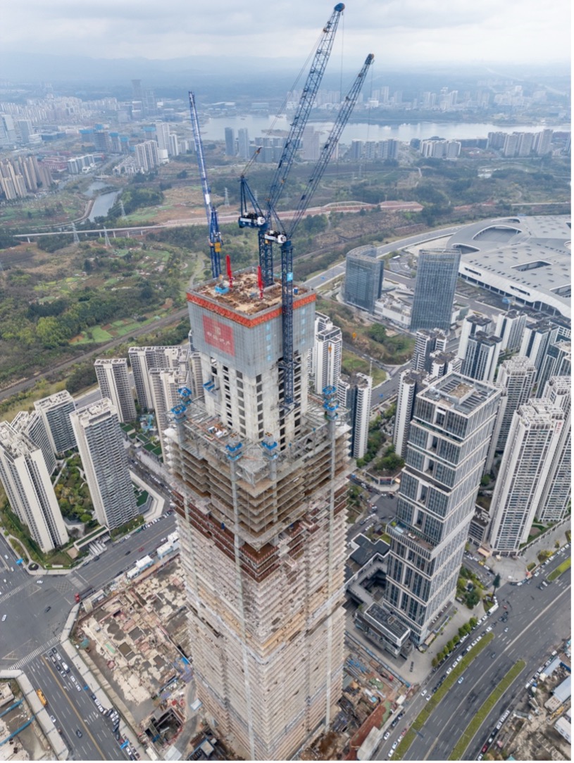 3月17日,四川成都,航拍建设中的中海成都天府新区超高层项目。目前该项目主体高度已突破300米,主塔总建筑高度489米,建成后将成为成都新地标。中新社