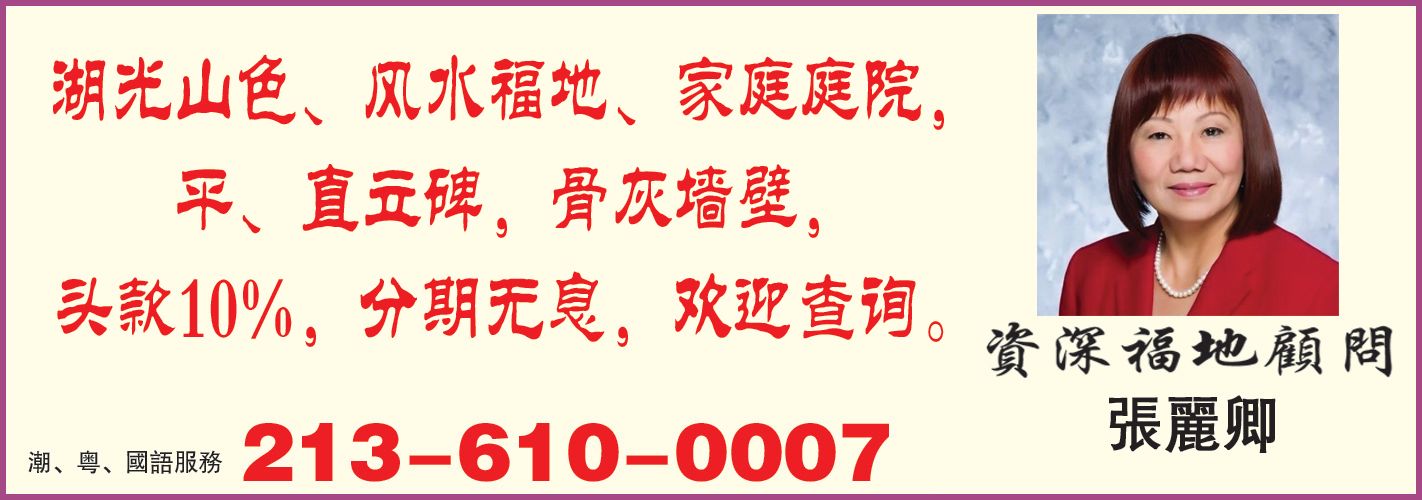 资深福地殡仪顾问为您提供人生最后一站专业服务,张丽卿咨询电话:213-610-0007。