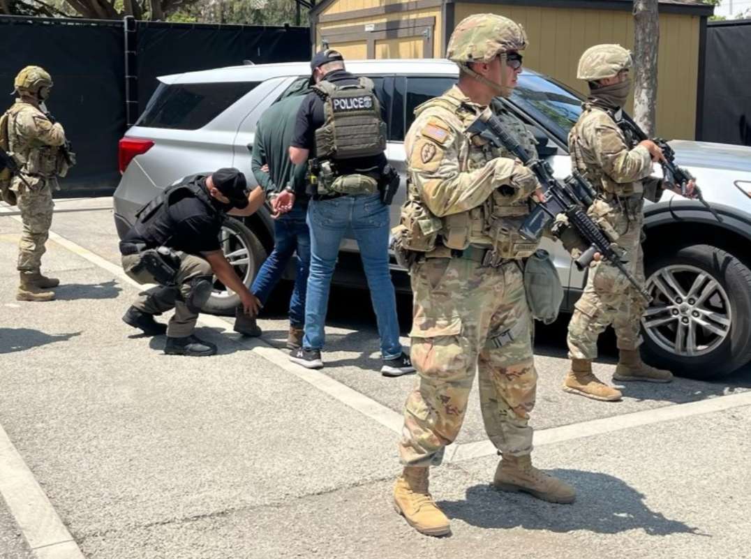 截至周一下午,来自圣地亚哥第79步兵战斗旅的300名国民兵已部署至洛杉矶,为联邦移民与海关执法局(ICE)员工及相关建筑提供防护。国防部同日宣布,另有700名驻二十九棕榈市(Twentynine Palms)的海军陆战队员将驰援洛杉矶。