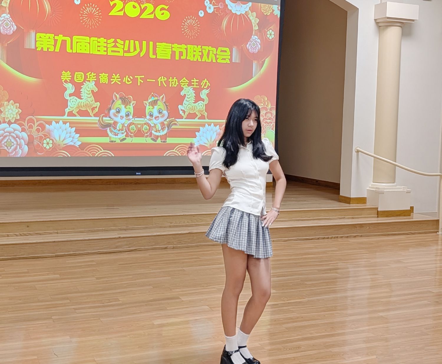 配图2:牛含章同学表演K-Pop舞蹈。(侨报记者张苗摄)