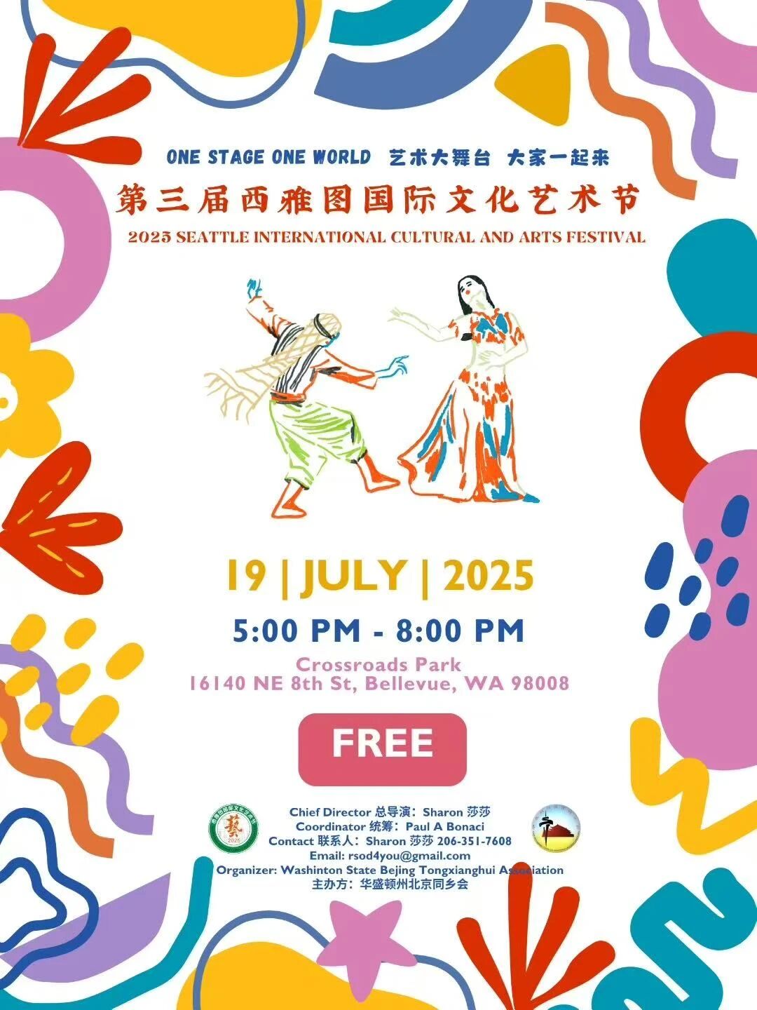 【侨报讯】盛夏来临,西雅图将迎来一年一度的文化盛事。由北京同乡会主办的第三届西雅图国际文化艺术节将于7月19日(星期六)在Crossroad Park(鲸鱼公园)热闹开幕。作为本地最具人气的户外文化活动之一,今年艺术节在保留传统亮点的同时,进一步升级多族裔参与,打造一个融合文化、联结社区的艺术舞台。