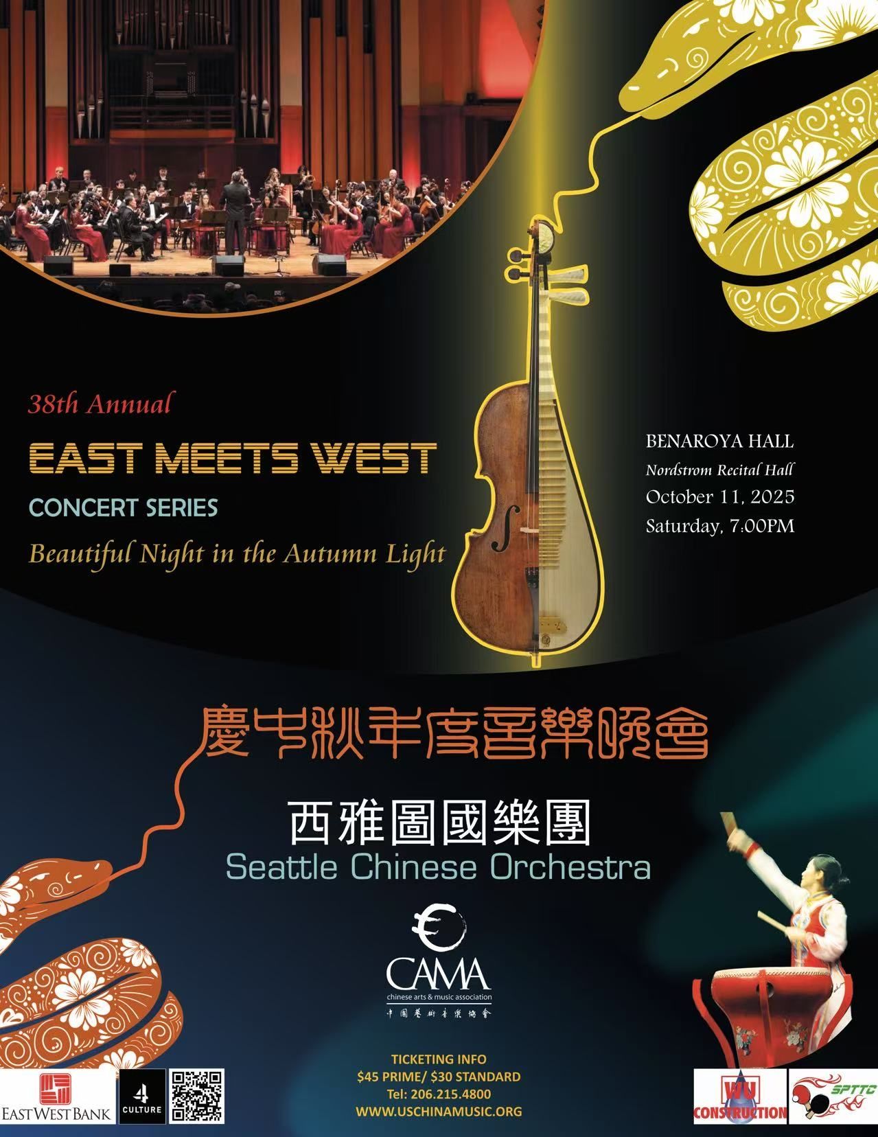 【侨报讯】西雅图国乐团第38届中西合璧音乐会将于2025年10月11日(星期六)晚7:00,在西雅图市中心的贝纳罗亚音乐厅——伊尔斯利·鲍尔·诺德斯特龙演奏厅(Illsley Ball Nordstrom Recital Hall at Benaroya Hall)隆重登场。