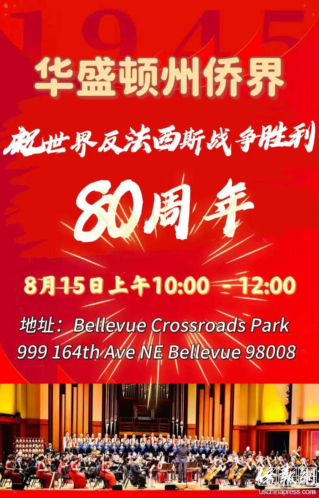 【侨报记者陈艳红8月5日西雅图报道】今年是具有里程碑纪念意义的世界反法西斯战争胜利80周年,为铭记历史、珍爱和平、弘扬正义,美国西雅图侨界将于8月15日上午10点在西雅图东区贝尔维尤市 Crossroads Park 举办一场规模宏大,气势磅礴的百人大合唱快闪活动。届时,大家用歌声缅怀先烈,用歌声汇聚友谊,用歌声传递和平,展现西雅图侨界强大的凝聚力,组织力和同心力!