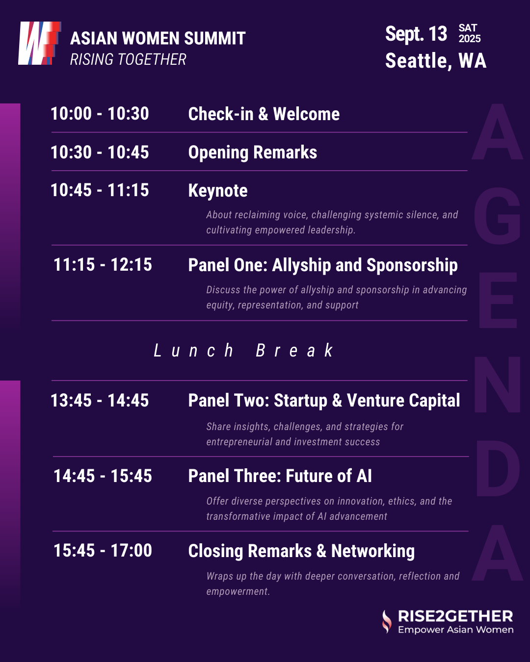 本次峰会以亚裔女性为核心,旨在提升行业领导力与社会影响力。同时,它不仅是一场女性职场盛会,更是一次凝聚社区的重要社会活动,欢迎所有同盟者和前辈,不分性别、行业与年龄,共同交流、合作,携手创造更加有社会影响力的社区。