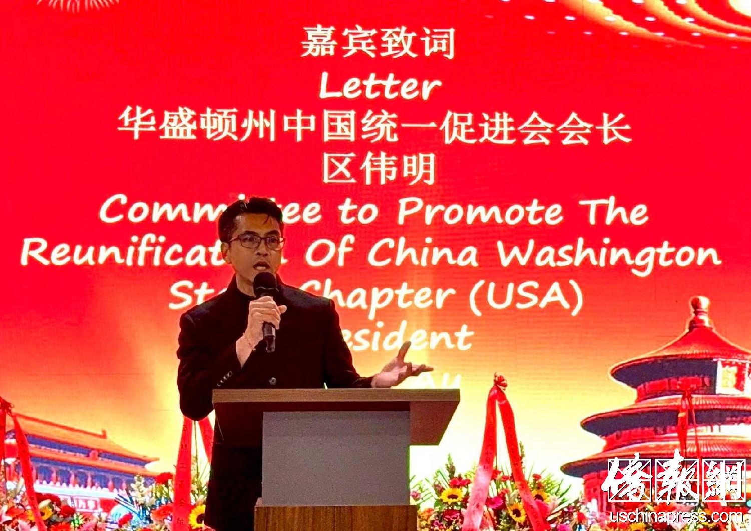 晚会由田乐乐主持,在中美两国国歌的庄严旋律中拉开帷幕。华州中国统一促进会会长区伟明致辞时宣读了来自美国国会议员亚当·史密斯(Adam Smith)及华盛顿州州务卿史蒂夫·霍布斯(Steve Hobbs)的贺信,并将贺信郑重转交中国驻旧金山总领事馆副总领事杨守征及晚宴召集人陈求昌、方伟侠。贺信不仅传递了祝贺与友好,也象征着中美交流的延续与期待。