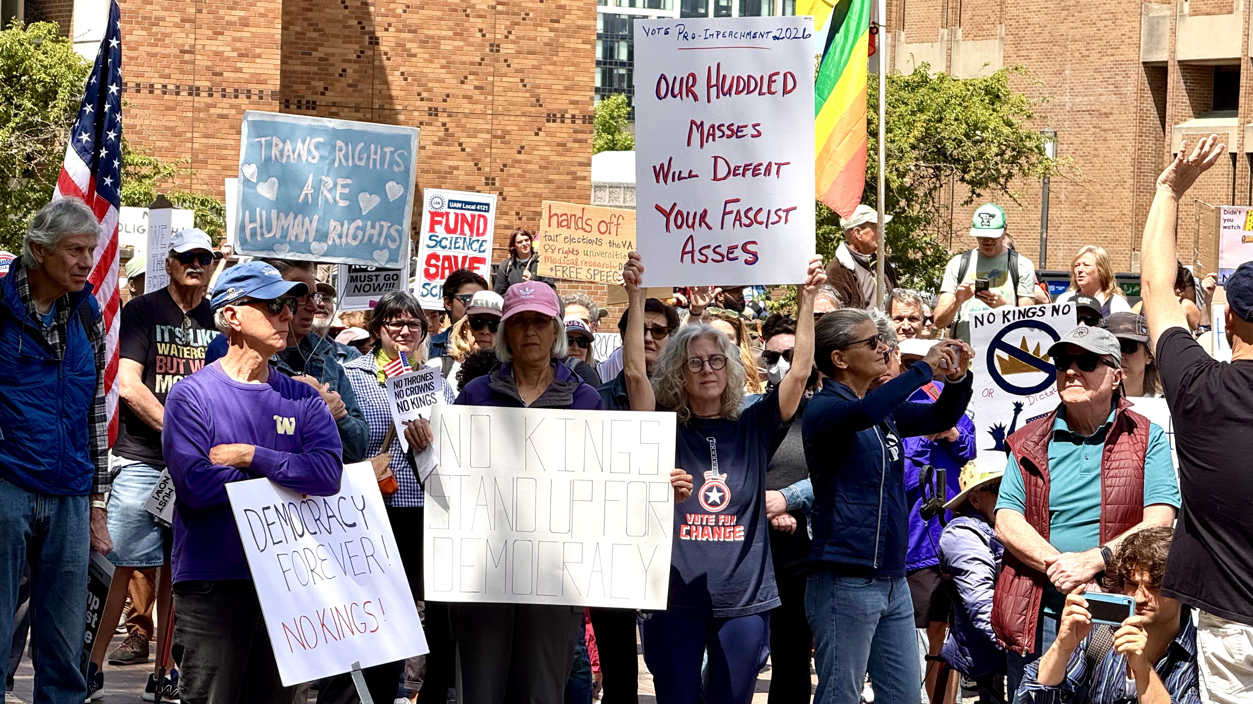 【侨报讯】全美范围内新一轮名为“No Kings”(拒绝国王)的抗议活动预计将在本周末登场,西雅图及华盛顿州多地民众将再次走上街头,表达对总统唐纳德·特朗普执政方式的不满。