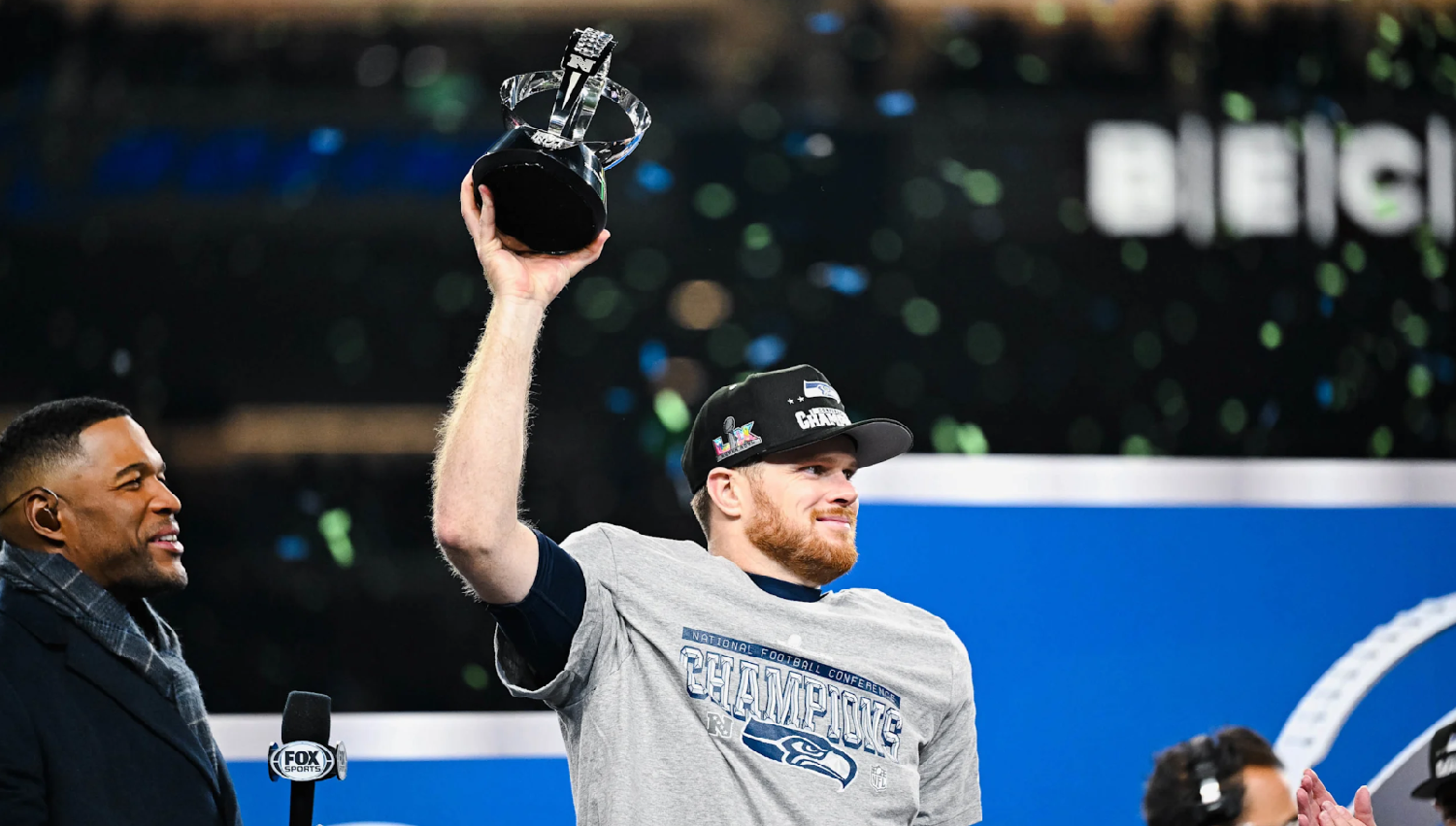 本场比赛最大的亮点之一,无疑是海鹰四分卫萨姆·达诺德(Sam Darnold)的出色发挥。长期以来,他在关键比赛中的表现备受质疑,但这一次,达诺德用行动彻底回应了所有怀疑。全场比赛,他36次传球完成25次,推进346码,送出3次达阵传球,且没有任何失误。这是他职业生涯中最重要、也最完整的一场比赛。