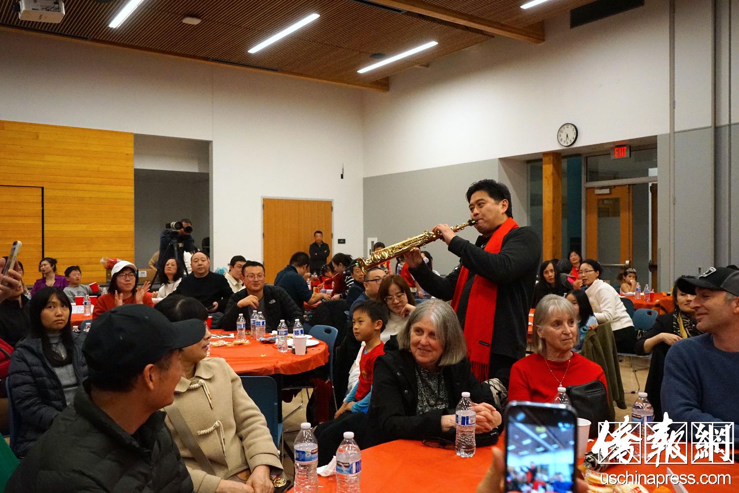 晚会以北雅舞蹈团带来的《红绸舞》拉开序幕,喜庆的舞姿瞬间点燃现场气氛。随后,知名音乐人蔡飞带来的萨克斯独奏《甜蜜蜜》《上海滩》,以熟悉的旋律勾起观众对经典华语歌曲的回忆。