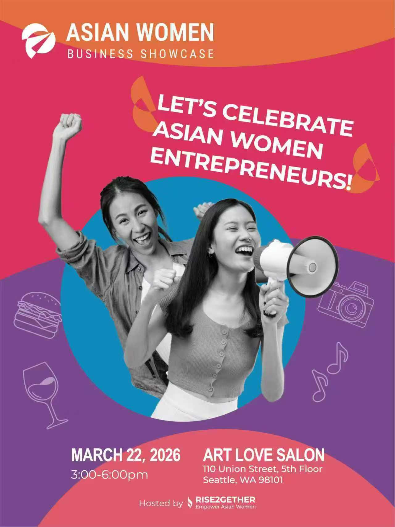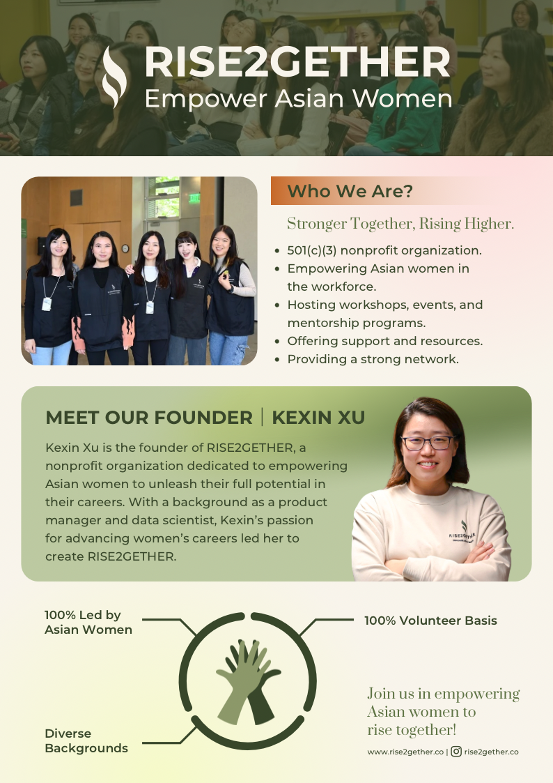 在此背景下,总部位于西雅图的非营利组织RISE2GETHER计划于3月22日在市中心举办“Asian Women Business Showcase”活动,旨在为亚裔女性创业者提供线下交流与展示的平台。